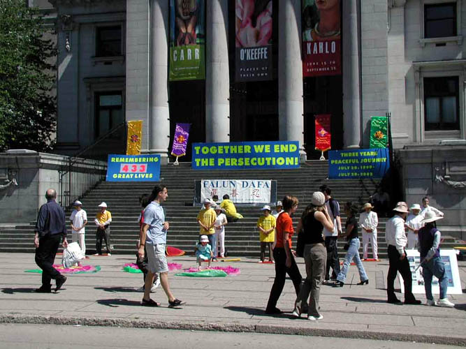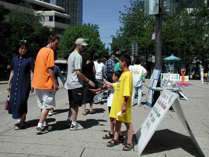 活动从上午9点开始,一直进行到晚上10点。前往EDMONTON 、CALGAARY参加当地大法活动的温哥华学员,不顾连续几天长途奔波和游行的辛劳,连夜赶回温哥华参加了本地的7.20活动。活动7月21日将在唐人街继续进行。