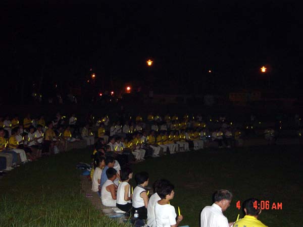 7月20日,新竹地区的学员们在丽池公园里办了一场烛光纪念晚会及大法弟子们的音乐演出活动。新竹市议会议员郑贵元先生并于百忙中特地赶到会场致词。他表示,去年的SOS步行活动他也曾前来参加,这是第二次参加法轮功的活动,郑议员肯定法轮功的和平理性,并确信真善忍将为人类社会带来更多的美好。节目开始是一段影片欣赏,短短十四分钟的时间里,感动了在场的所有人,同修说,我们的目的是为了唤醒更多的世人与我们携手共进,尽快制止这场迫害。