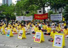 中央社图片报导:法轮功学员在香港中环遮打花园练功