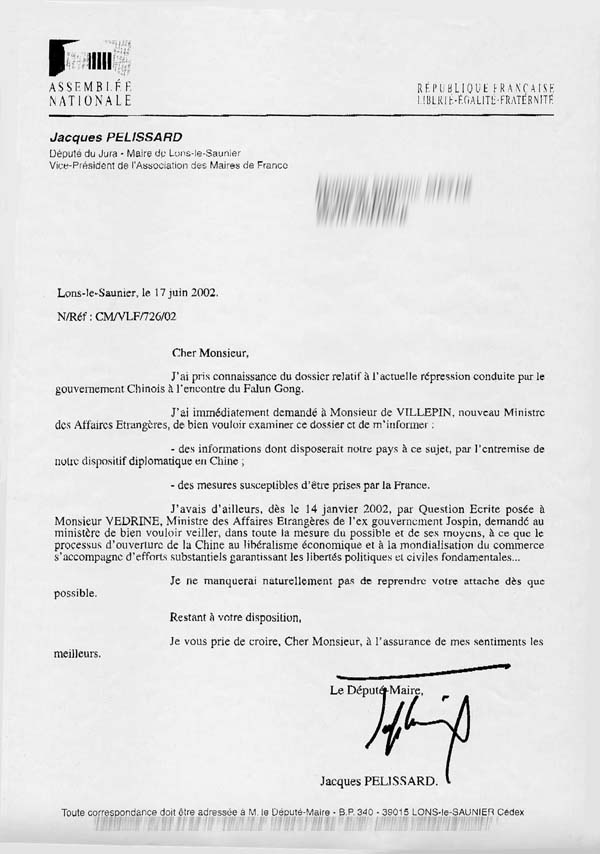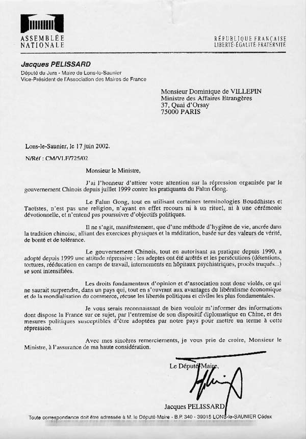 法国议员兼市长希望法国政府帮助制止江泽民集团对法轮功的迫害