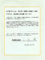 日本国会众议院议员牧野圣修(makino seisyu)先生最近给法轮功学员写来支持信, 呼吁中国停止迫害。