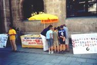 许多人拿了我们的信息材料,并观看照片,有些人驻足很久。有些行人表达了对我们的支持。一位妇女鼓励我们继续下去,她说让大众获知有关信息很重要。一些人在签名册上签了名。