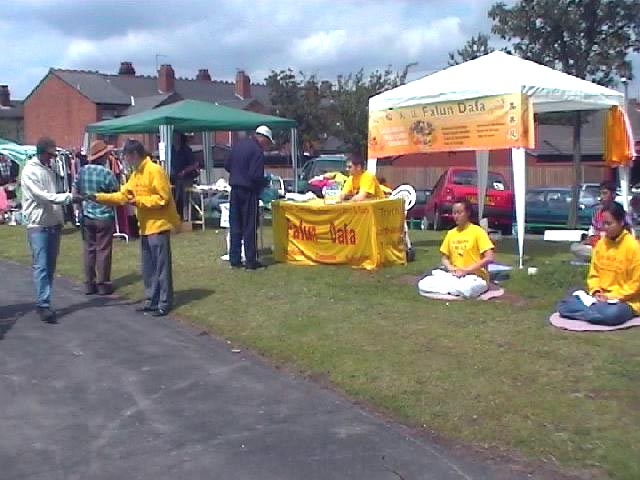 在庆典仪式上,大家还共同观看了介绍法轮大法的录像片。接着,学员向前来参加庆典活动的当地市民教授了法轮功五套功法。许多人纷纷购买法轮功书籍和录像教功带,并留下联系电话,希望以后能多参加法轮功的炼功活动。