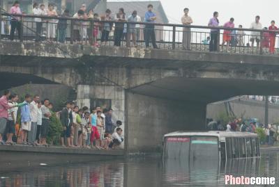 上午9时40分左右,记者赶到驷马桥时,桥下通道已完全被水淹没。已经看不见车牌号码的83路公交车早已熄火,车上20余名乘客正透过车窗向岸边呼救。这雨一阵紧似一阵,眼看积水已快漫上车窗边沿,车厢内乘客们惊恐万状,而岸边的群众也在不断地向119报警。目击者称,这辆从青龙场开往机投镇的公交车早晨8点30分左右就陷入水里了,因为水太深,离岸又远,整车乘客已在里面呆了1个多小时了。