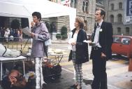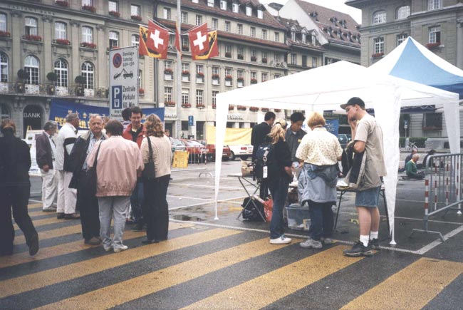 一位从慕尼黑来的游人,他说,见到法轮功很高兴,他非常想炼法轮功,但不知道怎么与德国的法轮功学员联系。我们立即帮助他找到了联系办法,他高兴地签名支持法轮功。还有一对从法国过来的男女青年,他们说虽然不太懂德语,但他们认准了法轮功好,双双签名支持法轮功。又有两个瑞士小伙子说,找法轮功已经找了好久了,今天终于找到了,我们非常想炼法轮功。学员们立即为他们义务教功,满足了他们的心愿。