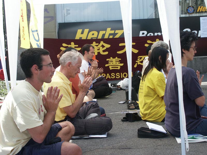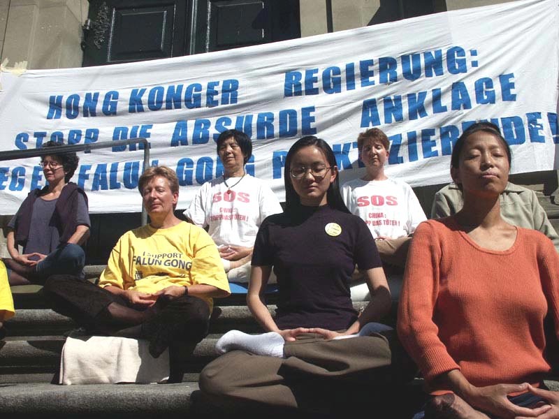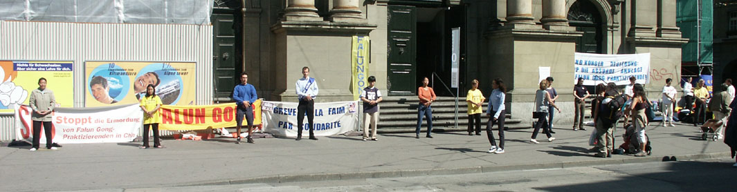 8月13日早,瑞士大法弟子在首都伯尔尼举行新闻发布会,揭露香港政治审判真相。为抗议江泽民集团把迫害法轮功延伸到香港及海外,声援在香港的大法弟子绝食请愿的正义行动,瑞士大法弟子于8月13日和14日,在首都伯尔尼同步举行绝食请愿。