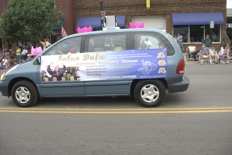游行期间,当本区内的国会议员见到身著黄色法轮大法T-恤衫的学员时,走上前来,亲切地拍着一位学员的肩膀说,“你们一直在为社区活动做贡献,谢谢你们!”学员也微笑着将大法材料递给了这位多次给予我们有力支持的议员先生及夫人。当一位观众接过学员派发的一份资料时,惊喜地大声念着,“法轮功! 你是法轮功弟子!(Falun Gong Practitioner!)”