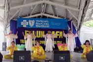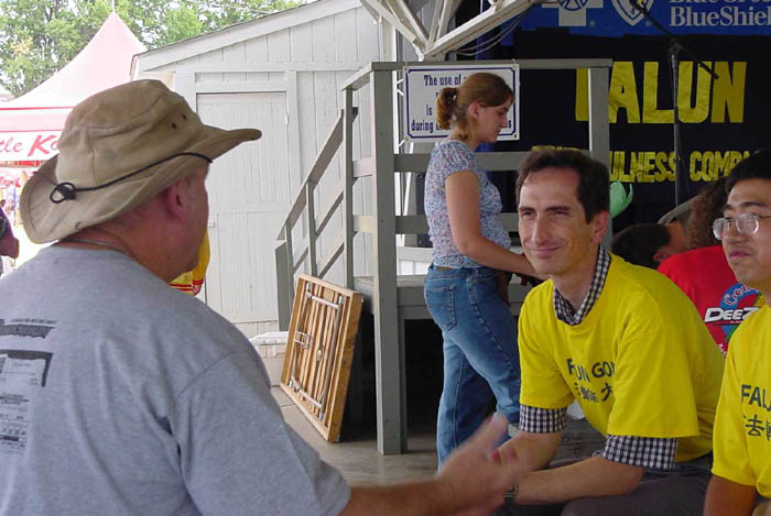 8月11日,大法弟子参加了爱荷华州游园会(IOWA STATE FAIR)的节日活动。 舞台表演中,大法弟子展示了五套功法, 随后表演了由弟子们特意编排的舞蹈以表达大法的美好,以及在逆境与迫害中大法弟子们的慈悲和不屈不挠的精神,呼唤着世人珍惜这千古难遇的机缘。整个表演很成功,观众们给予我们热烈鼓掌,人们走上前和我们交谈以更多地了解大法。