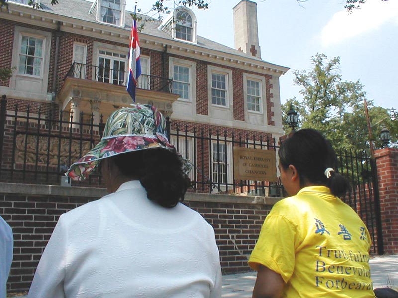 学员诚心地告诫柬埔寨政府善恶有报的道理,呼吁柬埔寨政府不要在如何对待法轮大法的问题上再屈从于江泽民集团的邪恶压力而做出助纣为虐的事,同时呼吁他们对柬方警察的错误做出及时的补救,希望他们能为了柬埔寨的国际形象和国家前途考虑,站在正义的一边,抵制中方的非法要求。