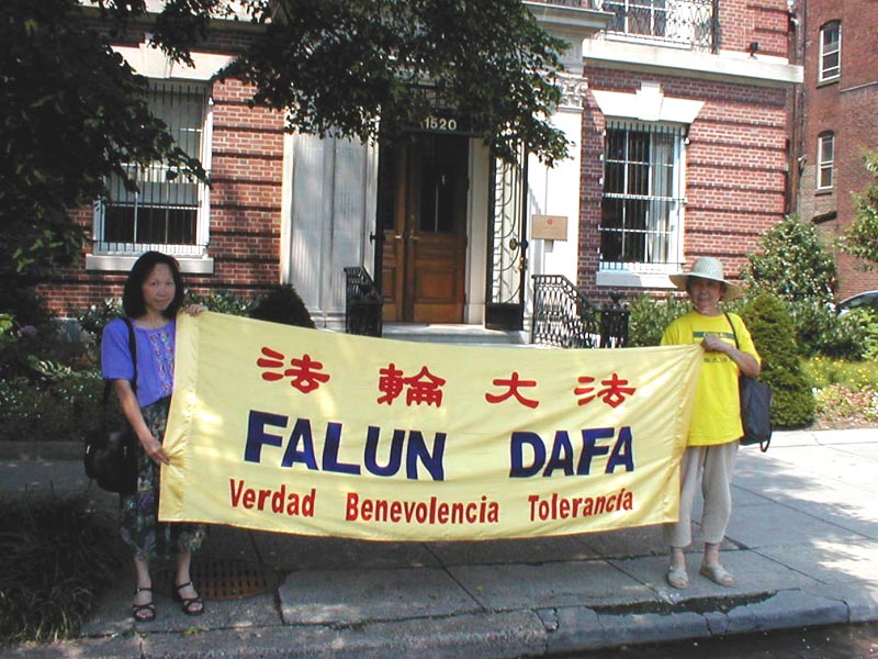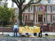 一点钟左右,几名法轮功学员按响了使馆的门铃,顺利进入使馆递交了一封写给使馆官员的信,并向各位使馆工作人员逐一讲清真相。下午4时许,大法弟子们通过不懈努力见到了一名政治专员,向他系统地讲述了大法的真相、江泽民政府对海内外学员的迫害事实以及向海外政府施压的霸道行径。