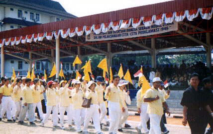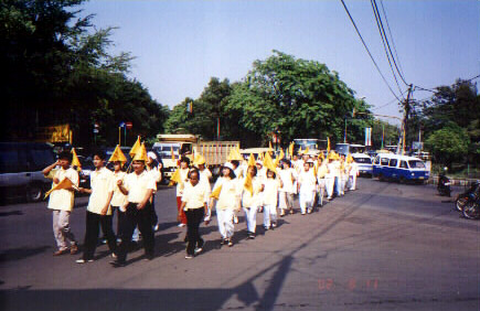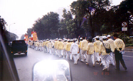 | 8月11日,大法弟子参加印尼国庆“步行健身”活动 | |
