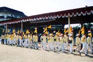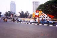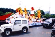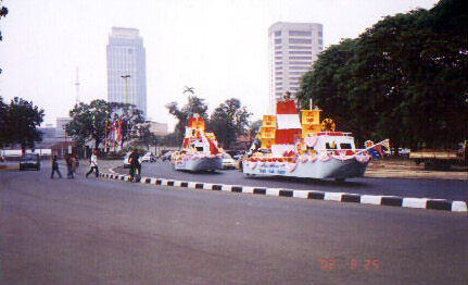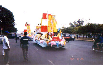 | 8月25日,彩船自民族纪念碑启航,通过总统府前,又经热闹大街,走过20公里之远 | |
