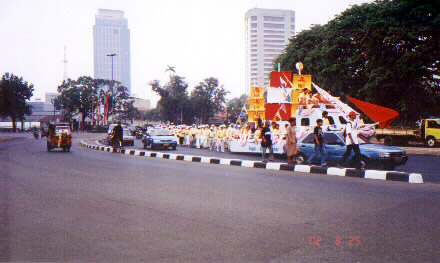 这次庆祝国庆的花车游行活动,学员们始终保持纯正祥和的心态,在正念的强大威力下,邪恶的干扰未能得逞,使印尼人民通过此事件认清了镇压者的邪恶无理,看到了大法弟子大善大忍的风范,感受到了大法的纯正祥和。