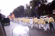 两小时后,救火车开走了,大批武警消失了,最后大吊车也不见了踪影。原用大吊车把彩车拖走的命令取消了,原指定得把写着真善忍的风帆取下方可返航的命令撤消了。原要求学员们就地解散的命令改成允许学员们在彩车后面整齐列队,随着彩车开出广场,驶进大道扬帆归航。如此壮观的队伍在大道行驶大约一公里,行至总统府前,游行的学员方解散。其中一辆彩车满载着坐在莲花座上的学员。另一辆满载着舞狮队的彩车在首都雅加达的大街小巷继续穿行,两只雄狮随着锣鼓声起舞,直至回到来处,全程20公里。