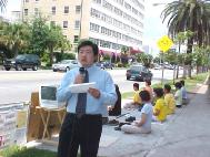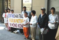 8月5日中午12点至下午2点半钟,旧金山湾区法轮功学员到香港驻旧金山办事处门前请愿,要求香港警察撤销其对16名法轮功学员的无理起诉。香港驻旧金山办事处的官员接受了湾区法轮功学员的请愿信。