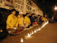 八月五日中午十二点至一点,休士顿法轮功学员在中领馆前举行新闻发布会,呼吁香港当局停止政治起诉。当天晚上七点至十点,还在中领馆前举行烛光守夜活动。