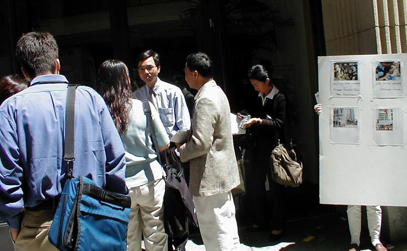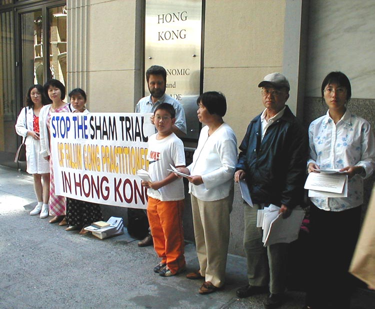 本着对香港前途的关切,学员们在办事处门前,心态祥和地向过往人士和各家媒体讲述16名法轮功学员在香港被无理起诉的真相。自由亚洲电台、湾区之声电台、大纪元时报等多家媒体到场采访。