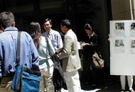 | 法轮功学员在香港驻旧金山办事处前请愿 | 香港驻旧金山办事处的官员接受法轮功学员的请愿信 |