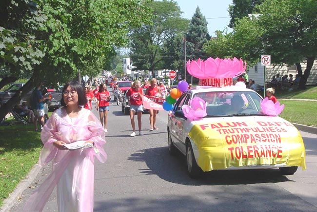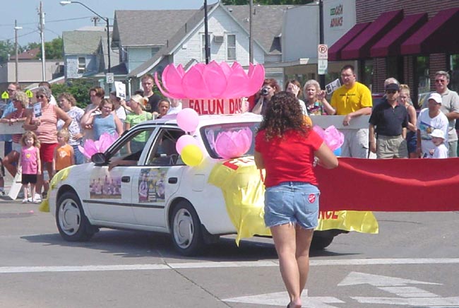 【明慧网2002年8月7日】2002年8月3日,爱荷华州大法弟子参加了在印第诺拉市(CITY OF INDIANOLA)的游行并向该市的居民洪法。