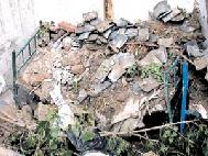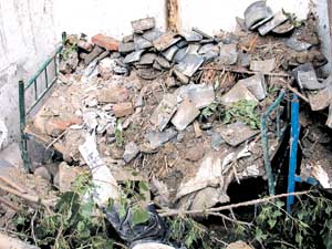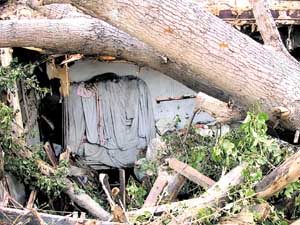 | 被大树砸毁的东大街旅馆已面目全非 | 屋内的双层铁床被砸散架 |