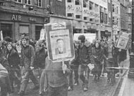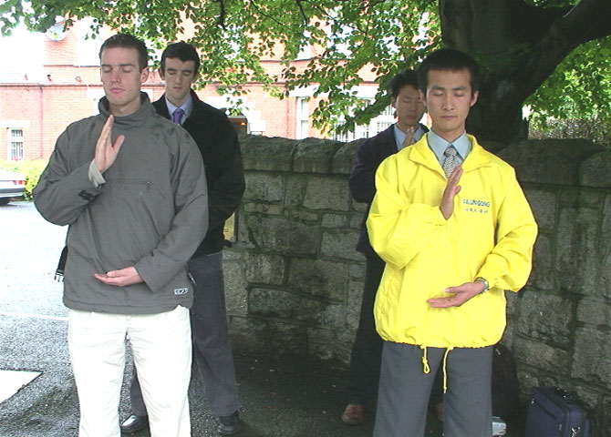 | 2001年都柏林三圣学院学生为呼吁释放赵明在都柏林市中心举行游行 | 三圣学院校长John Hegarty教授参加呼吁释放赵明的集会 | |