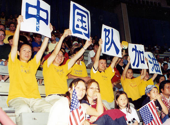 【明慧网二零零二年九月十日】初秋,美国印第安纳州的首府印第安纳波利斯市迎来了一批批远方的客人。2002年世界杯篮球赛将于八月二十九日至九月八日在这里举行,来自世界各地包括中国队在内的16支球队将展示他们的球艺并争夺锦标。中国篮球队是六年来第一次参加重大国际比赛,不但国内派出了大量的记者,海外的中国球迷和华侨也云集赛场为中国队助威。