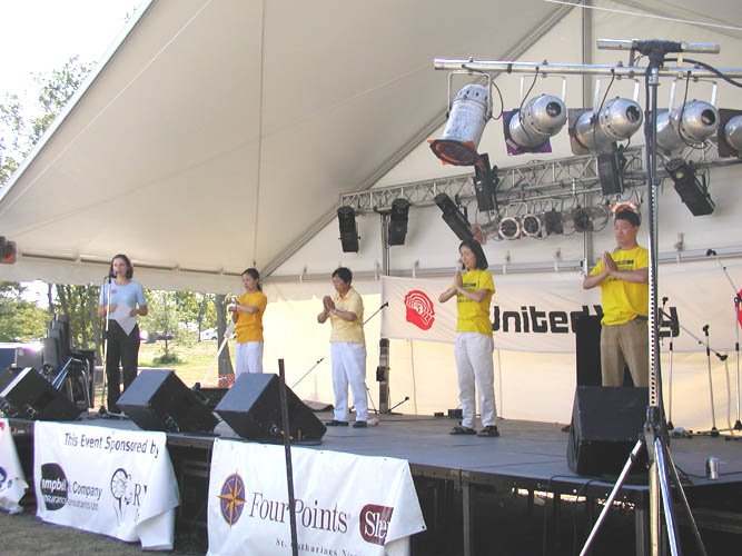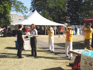 学员们在展位上放上各种中英文资料,同时着装整齐的学员在展位旁演示五套功法,吸引了来来往往的人们驻足观看,一些感兴趣的有缘人上来和学员们攀谈,要求学功,许多人在听了学员介绍后,在“营救多伦多学员家属”的征签卡片上签字,表达自己的支持和关心。有人在那些被迫害的家属的名单那一段打上着重号,写上“特别要尽快营救这些人”,也有一位中国来的新移民,在展位旁和学员攀谈了很久,一直很认真地听学员们讲法轮功在国内的迫害情况和真相,并对学员们递上的资料和真相光碟表示感谢。但也有为数不少的中国学生拒绝接受资料,还有人当时就把一份资料扔进了垃圾筒。看着这些年轻的面孔,学员们的心都是沉重的,这邪恶的蔓延之广,迫害之深,毒害的无辜生命无数啊,我们会更加努力。希望在新的学期里,这里的华人学生能够有缘听到大法的真相,从谎言的桎梏中走出来。