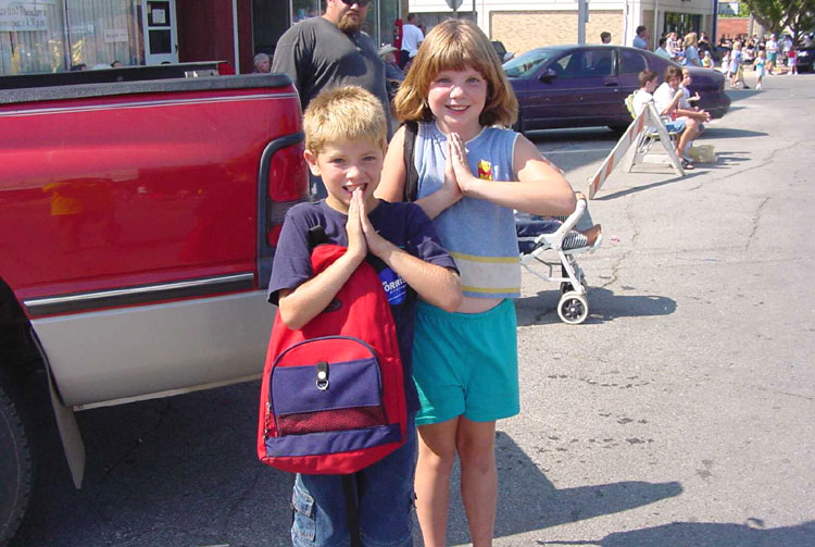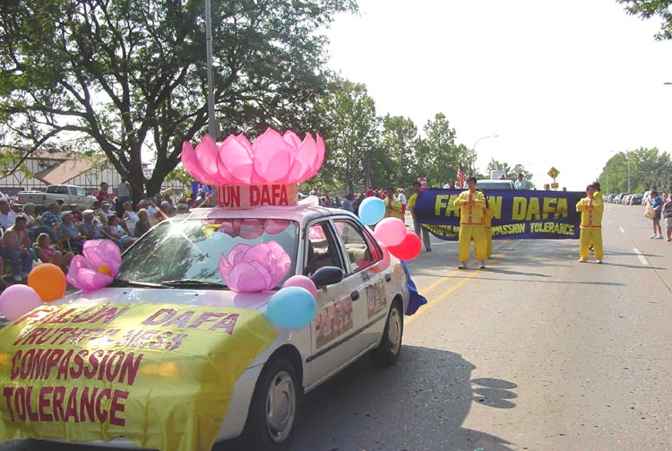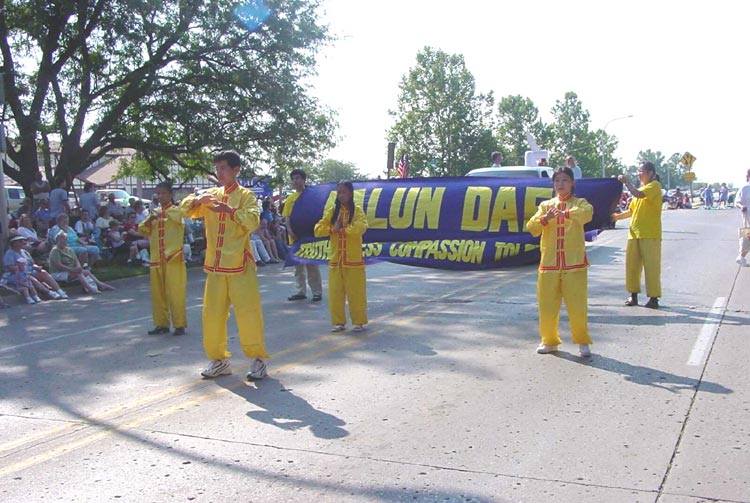 九月七日,大法弟子参加了在布恩市的游行,并通过在游行中展示功法把大法直接、清晰地介绍给人们。每走到一处, 观众们静静地观看,当展示结束时,给予我们热烈鼓掌,孩子们也站在一边模仿着我们的动作。