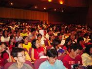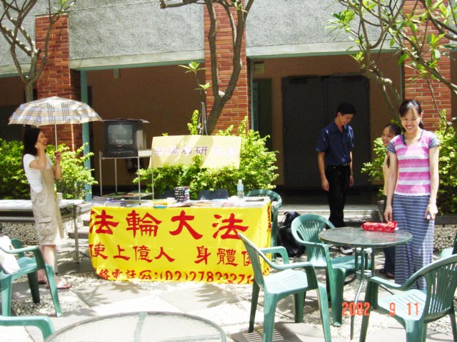 几个社团介绍之后,随着“普度”的音乐一放,本来浮躁的气氛安静了下来。拿到简介的学生无不仔细的阅读。在台下,学生们专注的聆听我们诉说什么是法轮功,人为什么要修炼,以及发生在大陆的迫害真相。有人一看到我们的学员马上就说:果然是法轮功的样子。有人说:真的祛病健身这么神奇?我妈妈应该也要炼一炼。有人说:那大陆怎么会这样!太不分青红皂白了。有人看到资料中泽农的修炼故事,特别感动的说:这真的是教人做好人的。