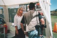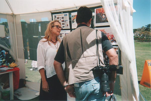星期天一早,我们就开始在指定地点布置场地。这个场地离主要活动地区比较远,不十分理想,但正当我们的布置工作快结束时,一位组织人员走过来说她可以给我们一个更好的场地。我们过去一看,那个场地非常理想,离舞台很近,很多重要活动都在那儿举行,就立刻决定把我们的展台迁移过去。当天,所有来舞台听音乐看舞蹈的人群都能看到大法展台,索取资料也很方便。