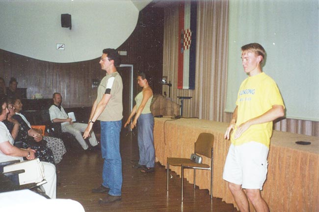 功法表演结束之后的休息时间里,很多人来找我们,反应很好。有的人问我们到哪儿能学功,一位女士兴奋地告诉我们,我们一开始炼功能量场就改变了。