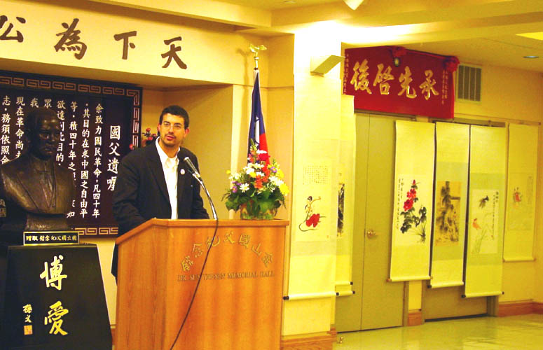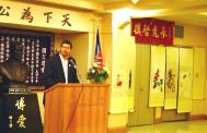 廖副处长代表李世明处长致词。他说,因为中国的字画不只是表象的美,更重要的是在字画中所显现的“气”与“德”,这就是要靠书画家平日的修身养性的功夫,一旦达到‘天人合一’的境界,才能自然地显现“气势万千”或者“心平气和”。廖副处长最后说,“章女士的温文尔雅,为追求正义,公理的浩然正气,我想各位一定都能从她的画作中感受出来。”