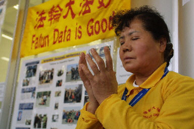 小型而又高贵的活动在星期四静静地进行着,这与在中国展开的大规模的迫害法轮功学员的野蛮行径形成鲜明的对比。在中国,父母、兄妹、亲人和其他人因为他们的信仰而被例行逮捕,拷打和杀害。
