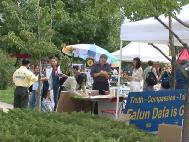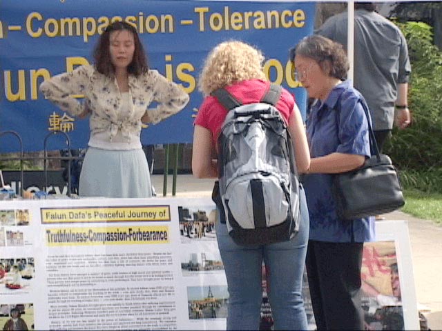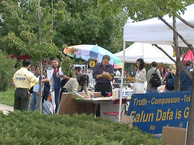 法轮功学员申请到一个摊位,法轮功之友也申请到一个摊位。在热闹市口左右各一个摊位,在两天内吸引了众多师生及民众了解法轮大法及在中国被迫害的真相。一位宗教研究系博士后导师说她一直很关注法轮功被迫害情况,并请法轮功学员到她的课上介绍大法。在签名过程中,当得知他们的签名将帮助数以万计的在中国被迫害的法轮功学员时,很多学生很激动,眼中流露着对自己正义之举的自豪。这次活动征集到约一千个签名,发出三千多份传单,使数千人了解到大法的真相。