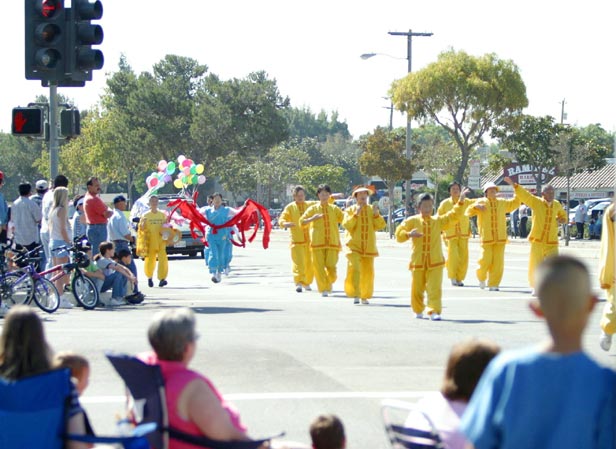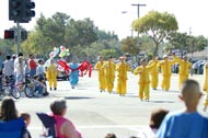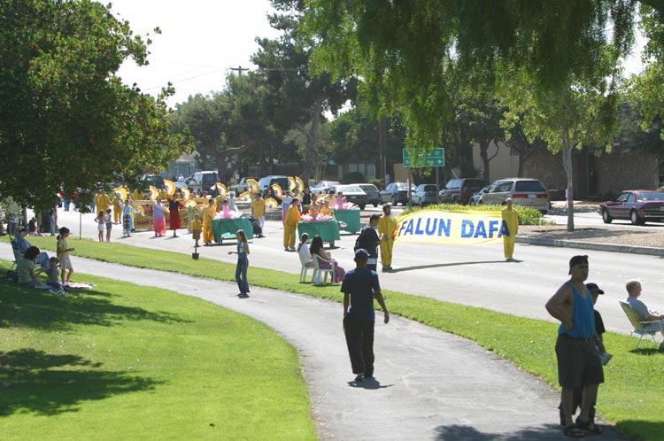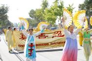 大法学员们根据现有的条件,在已有的功法表演队的基础上,另又组织了舞蹈队为观众们表演中国传统的扇子舞和红绸舞,当大法弟子身着艳丽的民族服装,挥舞着扇子和红绸翩翩起舞时,马路两边驻足观看的人群立即报以热烈地掌声,连连夸赞道“真是太优美、太好看了”,精彩的节目和祥和的风范使当地民众对法轮大法留下了良好的印象。