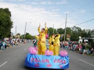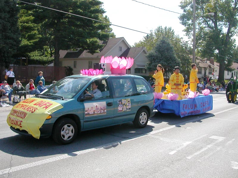 【明慧网2002年9月27日】9月21日,大法弟子参加了在爱荷华州比沃戴尔节的游行,向市民们弘扬大法,展示大法弟子风采。