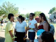 两天来,位于拉斯维加斯东北部的自由公园,欢声笑语,人海如潮。活动中心搭起了高高的舞台,高音喇叭不断传来振耳欲聋的摇滚乐。这边大法弟子炼功,洪法,发正念,一片宁静祥和。舒缓优美的五套功法和金黄耀眼的炼功服吸引着过往行人注目观看。不断有游客前来观看展板,咨询和学功。