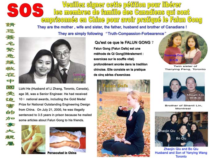 法语海报:请您签名紧急救援在中国受迫害的加拿大亲属