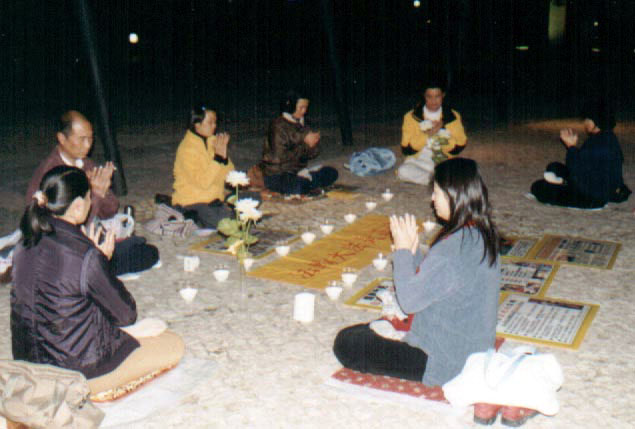 13日、14日连续两晚,澳门学员在中联办对面公园举行烛光晚会,悼念被迫害致死的大法弟子。