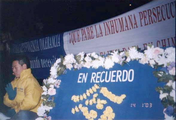 【明慧网2003年1月16日】连日来西班牙法轮功学员在中国驻西班牙大使馆前举行烛光守夜,抗议中国江氏集团对法轮功的