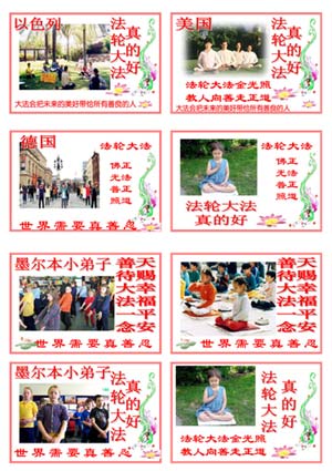 *中国法轮功是一门修炼身心的传统佛家气功,以“真善忍”为原则,教人修心向善。自1992年由李洪志先生传出至今,已传至世界六十余国,有上亿人修炼,处处受到各国政府及人们的欢迎喜爱。唯独中国江氏集团因妒嫉,动用全中国的宣传,公安,警察等国家机器,制造及散布各种自杀、自焚、家庭惨剧的谣言,嫁祸于法轮功学员,并对数千万的法轮功学员及其家属进行残酷的迫害。五百多位有名有姓的法轮功学员已经证实被迫害致死。江泽民因“灭绝群体”罪,在去年十月访问美国时,被告上美国伊利诺伊州联邦法院。