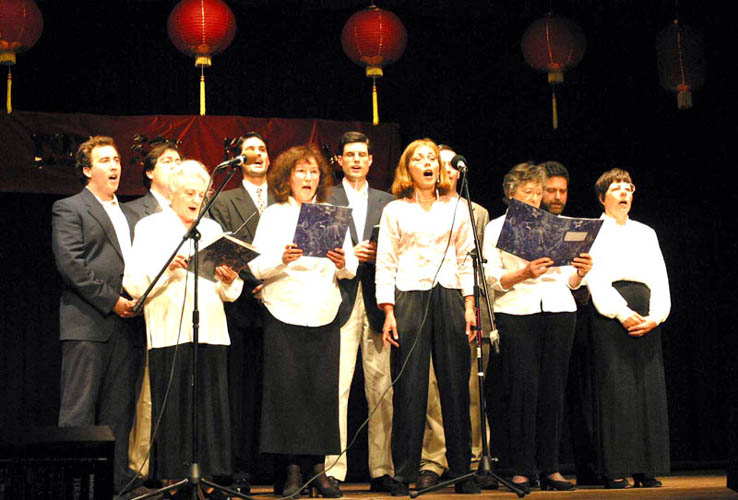 由旧金山湾区法轮功学员组成的光明合唱团合唱了《我是个修炼者》、《二人传》等歌曲,显示出大法修炼者的精神风范;由十几名西方法轮功学员组成的小合唱“为你而来”,用中文演唱,将他们的心声告诉给“可贵的中国人”,令在场的许多知音为之动容,迎来了一阵阵热烈掌声;五人表演的《天津快书》唱出了修炼路上的喜悦;晚会上还有各界著名演员表演了其它的精彩节目;最后,晚会在大法弟子、男高音歌唱家关贵敏演唱了《法正乾坤》等歌曲中结束。晚会自始至终,洋溢着一片欢乐祥和的气氛。