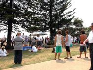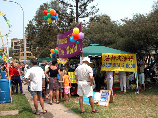 【明慧网2003年1月31日】元月26日卧龙岗的法轮大法学员被邀请参加当地的澳洲国庆日的庆典活动,这是连续三年被澳洲国庆日委员会邀请与其它社团一起参加庆典。庆典在卧龙岗海边的Belmore Basin举行,这是沿海岸线最著名的旅游景点之一。