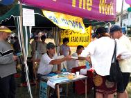 今年,学员们意识到是活动的主要目的,而磁带与录像能有效地告诉人们法轮大法的真相,因而复制了上百张《真实的故事》光盘来分派,人们都欣然接受。在活动结束时,所有的小册子和光盘被发放一空。