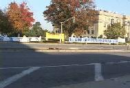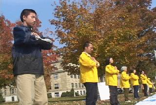 10月9日,从清晨到下午六点,部分来自渥太华、多伦多、蒙特利尔的学员,其中大部分是六、七十岁的老年学员,克服各种困难来到外交部以安静的炼功形式和平请愿。大家轮流炼功、打横幅,未有间断。