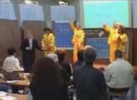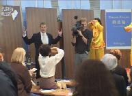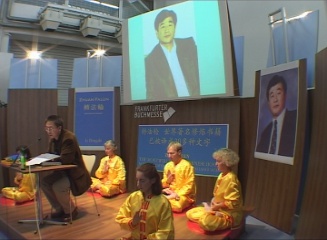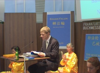 今年的法兰克福书展首次尝试设立十个涵盖各类话题的论坛。在名为“趋势”的论坛上,有两次介绍法轮功的专题讲座,题为“为什么这本书打动了千百万中国人”。一个半小时的讲座上学员介绍了中国的修炼传统,法轮功在中国的兴起和《转法轮》一书的诞生。另外还演示并讲解了五套功法,分别用中文和德语朗诵转法轮中论语的片段,把讲座推向高潮。