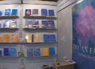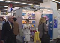 展台正好在拐角处,来来往往的观众好奇地来索取传单或提出问题。尤其是来自大陆的参展商和游客,看到书架上五颜六色各种语种的书,更是睁大了眼睛。学员们友好地走上前和他们攀谈。