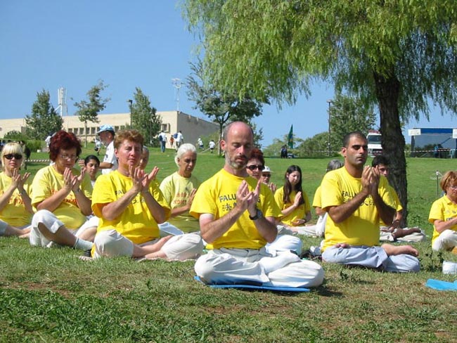 大法弟子在特拉维夫(Tel Aviv)举行了图片展和功法展示,向当地居民介绍大法。