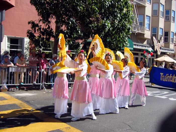 当天,法轮功学员的游行队伍所到之处,掌声、叫好声不断。有的观众给自己的家人介绍说,法轮功是遵照真、善、忍原则的精神修炼,有的华人给家人翻译英文横幅上的字说,这是真、善、忍。还有的观众跟学员说,我喜欢你们的队伍。