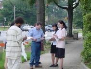 随后,我们在市政厅的停车场派发传单。因为是周五,有很多的人来市政厅办公事。人们对美国公民李祥春医生在中国遭受的迫害非常关注,纷纷签名表示支持,甚至有人郑重掏钱捐给我们,经过我们一番解释、婉谢,才带着敬意离去。